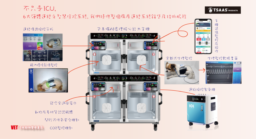 PRO系列 系統ICU Home - 住院設備 - PRO系列 系統ICU * 2026最先進智慧型ICU * PRO 系統ICU完全顛覆您對ICU的想像 。 最先進艙體材質:耐磨,抗刮,耐腐蝕,有效消除金屬光害,避免刺激動物眼睛 ,提升動物舒適度。1.高分子聚酯複合艙體材料(貓友善)2.高分子聚酯複合材料(底盤+頂盤)+部份不鏽鋼材質(狗友善)‧雙監控病房: 1.影像監控(平板+雲端上傳選配) 2.穿戴式生理監控數據 —- SPO2, 心電圖, 血壓, 脈搏, 體溫(穿戴式監護系統數據僅供住院時臨床參考用,請勿當作臨床診斷依據使用)革命性開放式供氧技術:獨家開放式供氧技術,幾分鐘內可達60%氧濃度,可選擇密閉式供氧或開放式供氧2種模式 置頂出風口磁吸扣柵板帶過網,便捷更換,方便清洗系統智慧判斷艙內缺氧或斷電,自動開啟緊急通風口,守護病患安全拆卸方便,內置過濾網,可拆卸清洗或更換,避免風道阻塞或交叉感染 尺寸,樣式眾多,欲了解詳情,請跟我們連絡。
